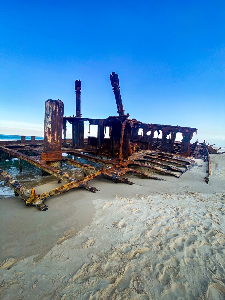 This ship had many uses in its life but at the very end, en route to a shipyard in Japan, the Maheno got lost in a cyclone and ran aground on Fraser – it’s been there for the photo taking ever since.